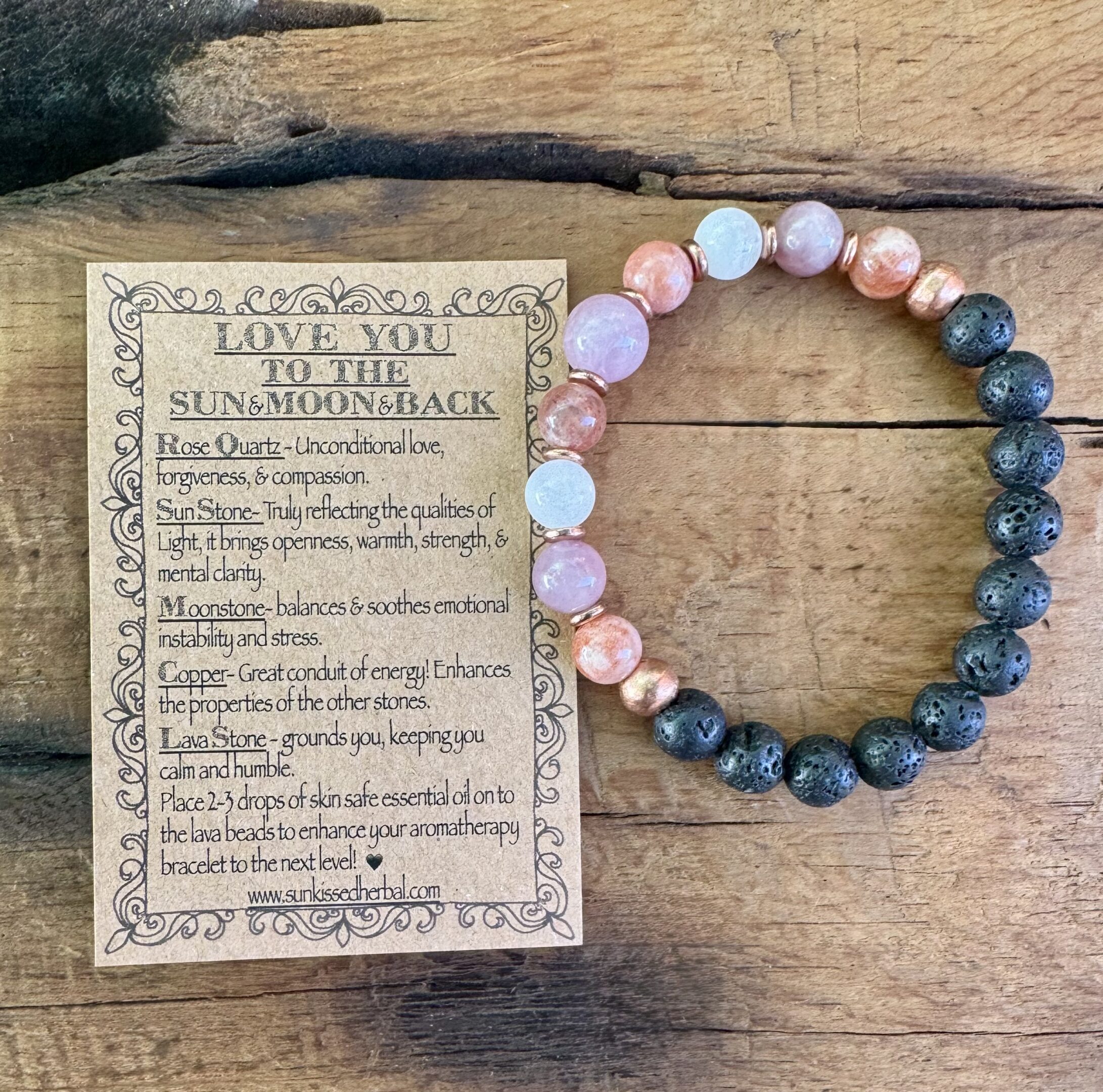 Lava Stone – grounds you, keeping you calm and humble.Place 2-3 drops of skin safe essential oil on to the lava beads to enhance your aromatherapy bracelet to the next level! 🖤